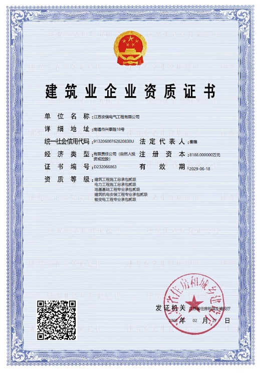 在創(chuàng)業(yè)之初,公司就堅(jiān)持高起點(diǎn)的戰(zhàn)略思路,廣納賢才,集聚行業(yè)精英,創(chuàng)新發(fā)展,做優(yōu)企業(yè)品牌。現(xiàn)已取得:承裝二級、承修二級、承試二級,電力工程施工總承包二級,輸變電工程專業(yè)承包二級,建筑工程施工總承包二級,建筑機(jī)電安裝專業(yè)承包二級,地基基礎(chǔ)專業(yè)承包二級資質(zhì)證書,并通過了質(zhì)量、環(huán)境、職業(yè)健康和安全管理體系認(rèn)證,確保各項(xiàng)工作有序管控。